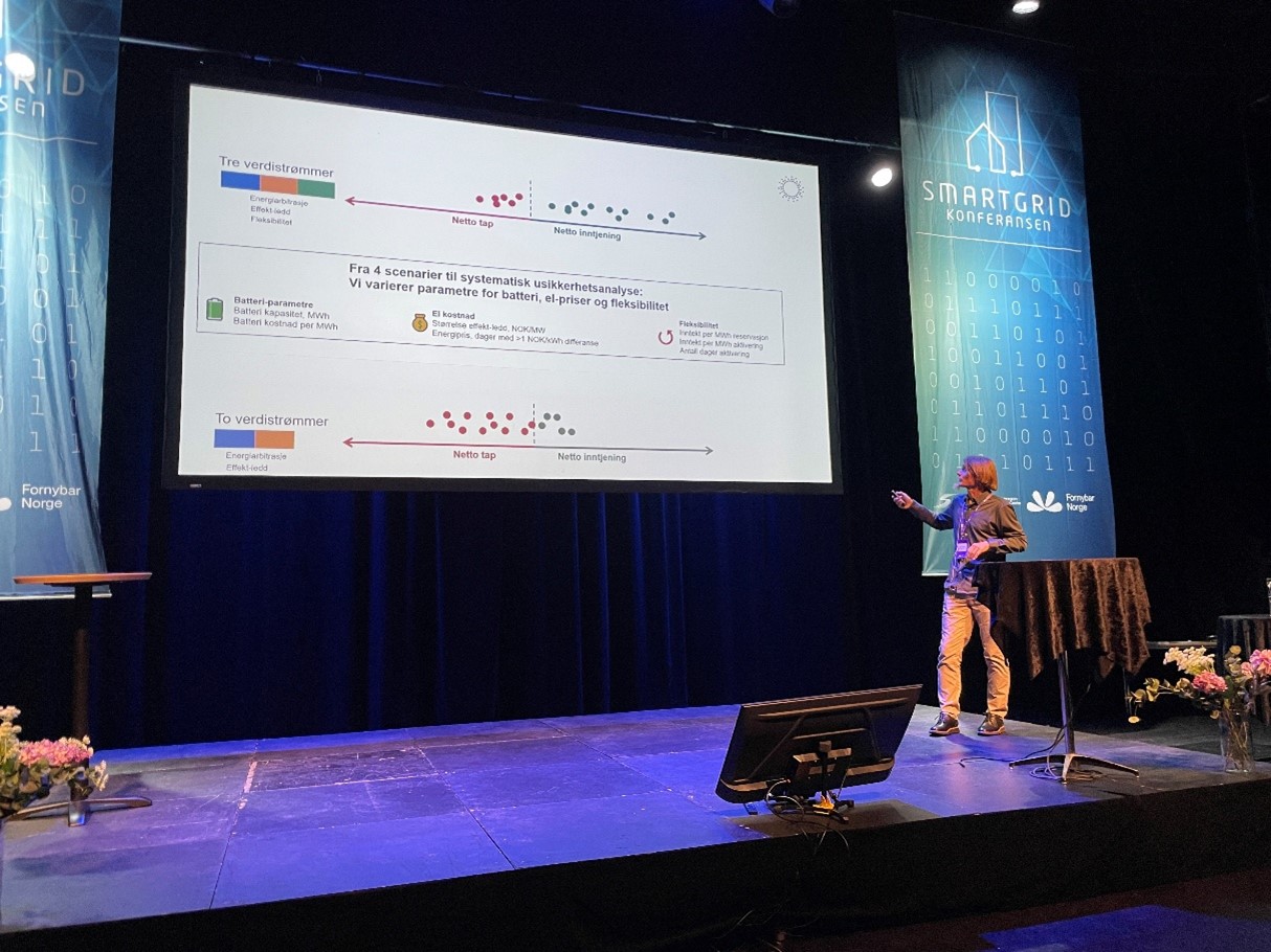 Instituttet deltok også på Smartgridkonferansen 2025, der sjefsforsker Kocbach holdt et innlegg om hvordan batterilagring kan bli lønnsomt gjennom verdistabling, og hvordan forbrukere kan motiveres til å bidra til fleksibilisering.